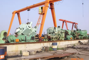 公司創建于1998年,具備國際廢舊船舶貿易進口批準證書。目前,公司拆船設備設施齊全、拆解操作流程科學合理,拆解技術力量過硬。公司擁有固定資產1.5億元,占地面積10.42萬平方米,岸線514米,擁有深水船塢2個,25噸起重門坐式吊機7臺和10噸龍門吊13臺。拆解作業以機械化為主,工作節奏快、生產成本低、效益高,同時辦公條件、生活設施、計量設備、倉庫儲存、貨運碼頭、環保污水等設施一應俱全。公司年拆解廢鋼能力達30萬輕噸(MT),幾年來已拆解進口船舶160余艘,同時經銷各種規格的拆船板、剪條、優質廢鋼、有色金屬(如螺旋槳銅、電纜線銅、銅合金),以及非金屬材料、機械設備及儀器儀表,.如起貨機、絞纜機、起重機、機修設備、主機、發電機組、通訊導航儀器等。
